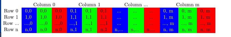 值得注意的是 OpenCV 读取图像后返回的矩阵 shape 的格式是 (H, W, C)格式。当 OpenCV 读取的图像为彩色图像时,返回的多通道的 BGR 格式的矩阵(HWC),在内存中的存储如下图: